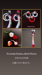 musubi_tokyo のロゴマークの梅結びを添えた翔鶴しめ飾りタイプ。梅鶴紋デザインです。